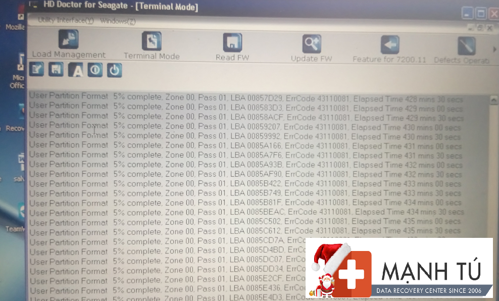 Ổ cứng sửa chữa để trả bảo hành cho khách hàng công ty LINH KIỆN VI TÍNH TẤN PHÁT với rất nhiều tình trạng khác nhau, anh Cường có gửi qua hàng trăm ổ cứng Seagate 250Gb, 500GB,1TB5, 2TB… Kỹ Thuật Mạnh Tú đã khắc phục sửa chữa thành công và bàn giao cho anh cường.